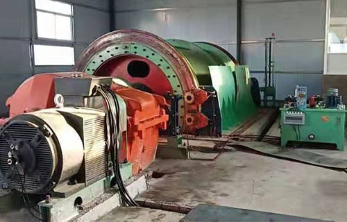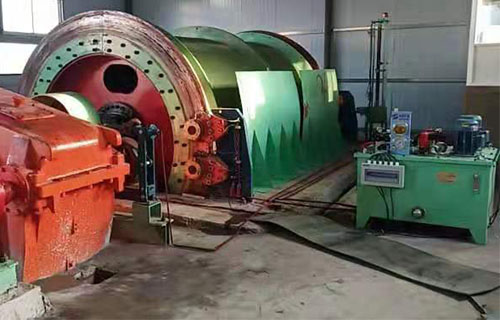 該提升機的主軸裝置有固定卷筒、活動卷筒(僅雙筒用)主軸、兩個軸承座、調繩機構(僅雙筒用)等部分組成,用來纏繞或釋放鋼絲繩。單筒提升機鋼絲繩為上出繩,雙筒提升機活動卷筒為下出繩,固定卷筒為上出繩,卷筒上裝有襯木。