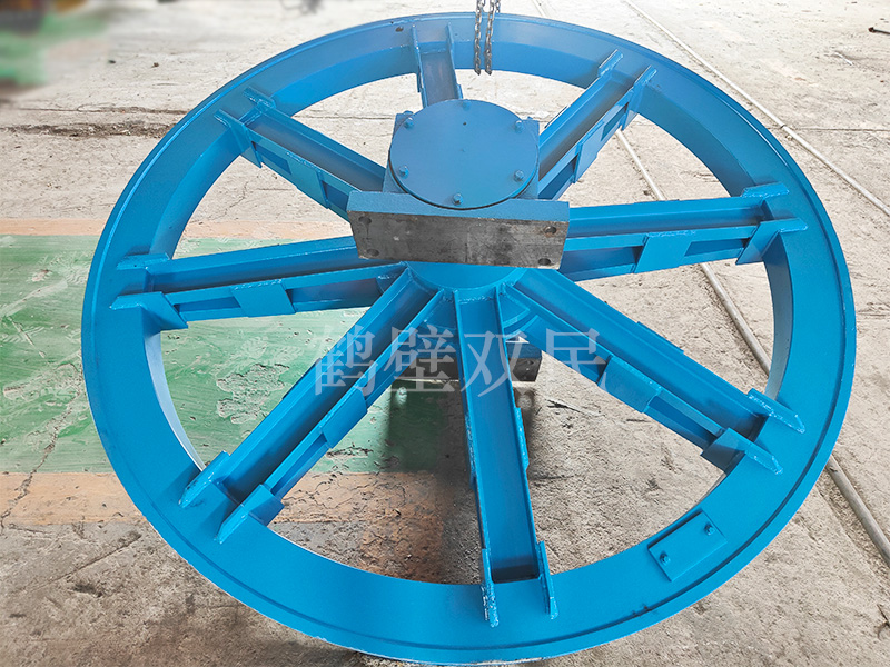 3、鑿井天輪用于立井鑿時懸吊吊盤及穩繩。