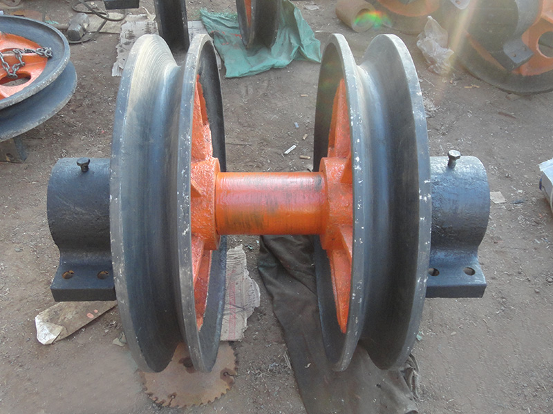 3、雙槽懸吊天輪采用繩輪與軸承座可調(diào)型式,使用時根據(jù)實(shí)際情況進(jìn)行選用,還可根據(jù)情況,另行組合設(shè)計,可不受規(guī)定品種和可調(diào)。